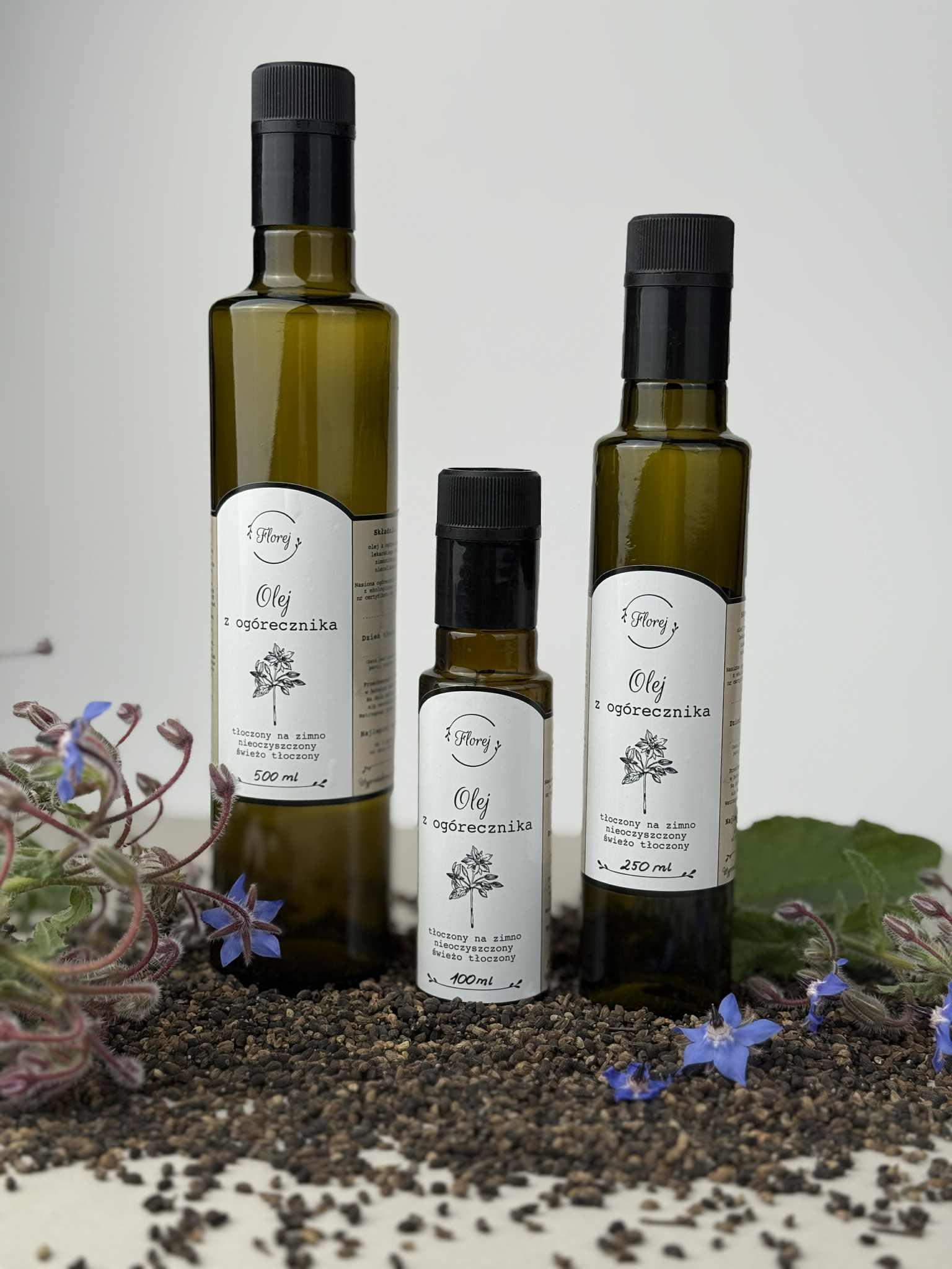 Przejdź do treściOlej z ogórecznika zimnotłoczony 100% – naturalne źródło kwasu GLA Olej z ogórecznika lekarskiego, tłoczony na zimno, to bogate źródło kwasu gamma-linolenowego (GLA), należącego do niezbędnych nienasyconych kwasów tłuszczowych (NNKT). Dzięki delikatnej metodzie tłoczenia na zimno zachowuje maksimum składników odżywczych i biologicznie aktywnych związków.